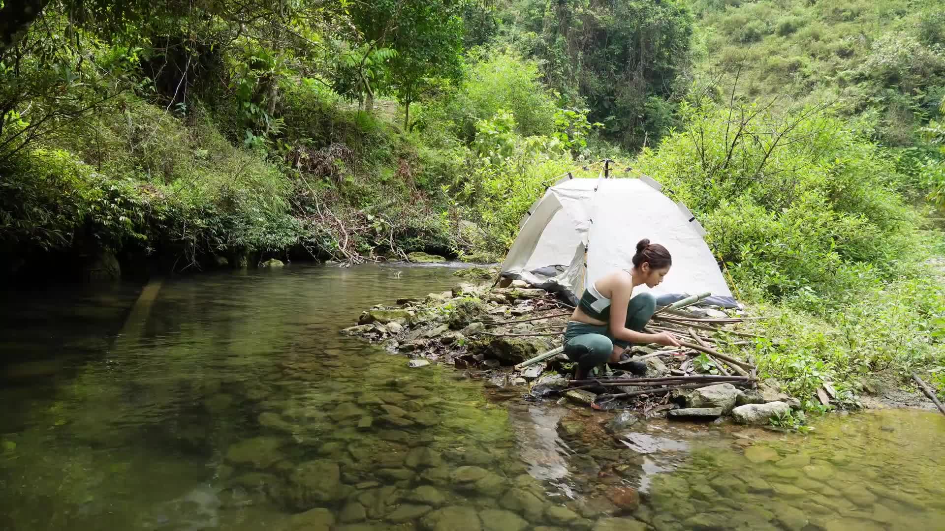 Solo Bushcraft & Camping, Build Survival Shelter, Create Fish Trap, Relaxing Video, living off gri5d...